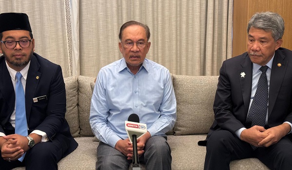 Perdana Menteri,Datuk Seri Anwar Ibrahim (tengah) dalam sidang media di Doha