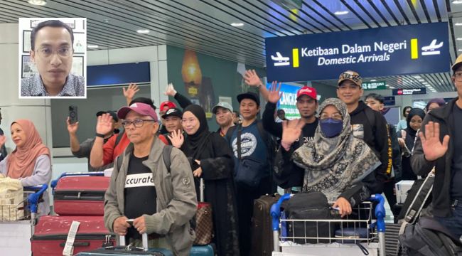 Kumpulan pertama rakyat Malaysia yang terkandas di zon konflik Asia Barat selamat tiba di KLIA Terminal 1,hari ini/(Foto kecil: Dr Mohammad Tawfik Yaakub)/ RTM